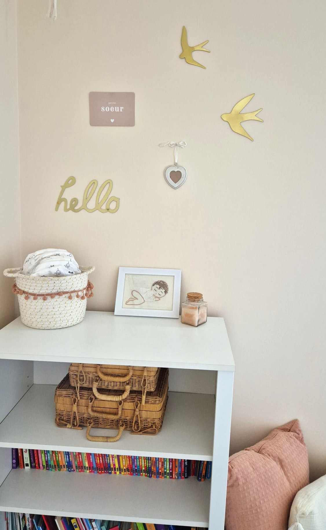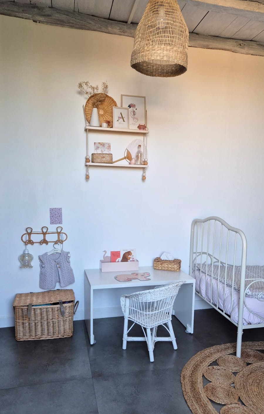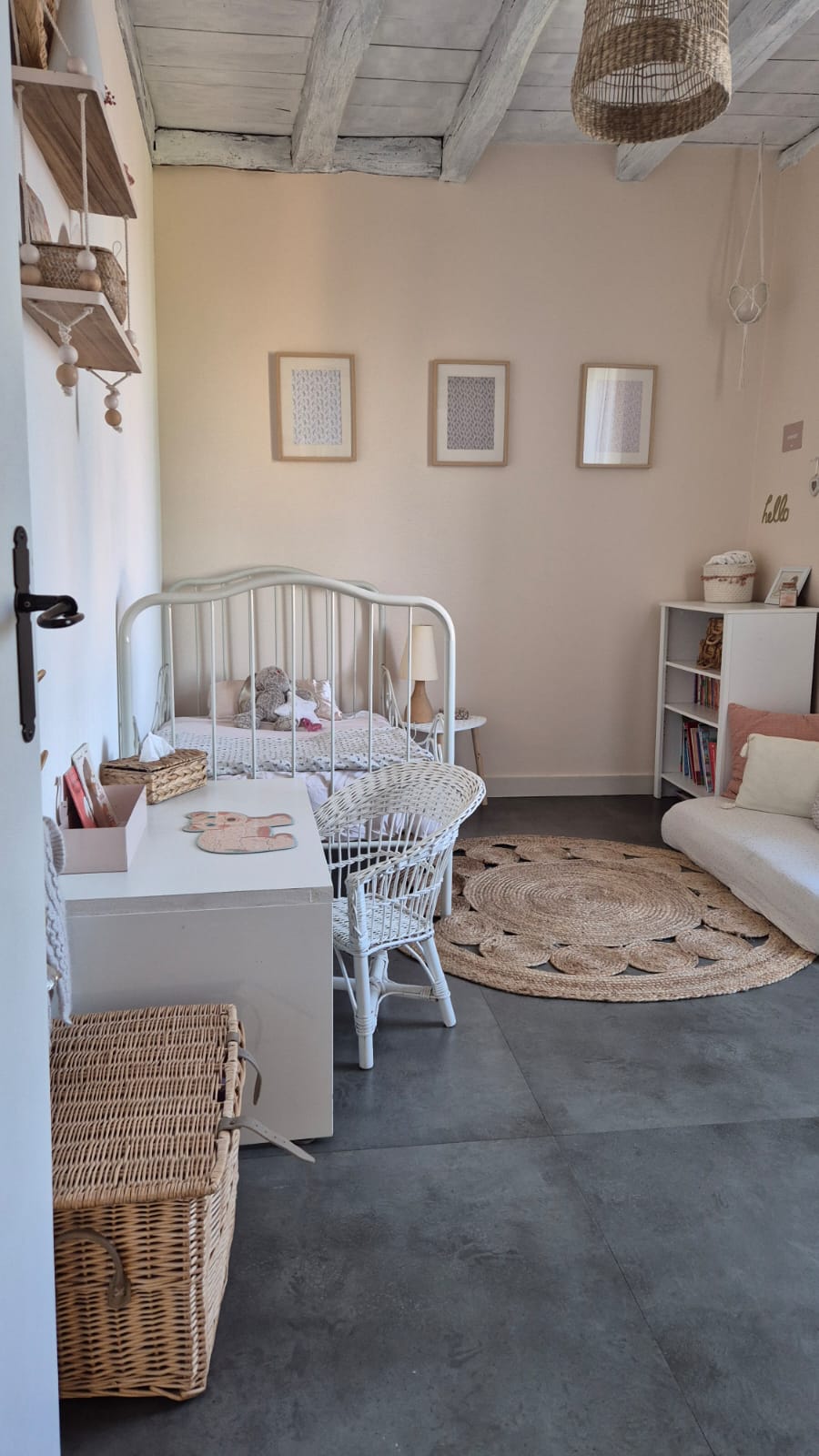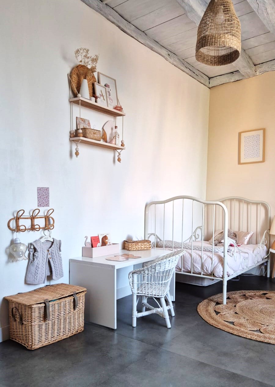 Pour une chambre naturelle et tout en délicatesse, le gris a laissé place à un beige rosé poudré qui apporte tout le charme et la douceur dont ce petit coeur a besoin.