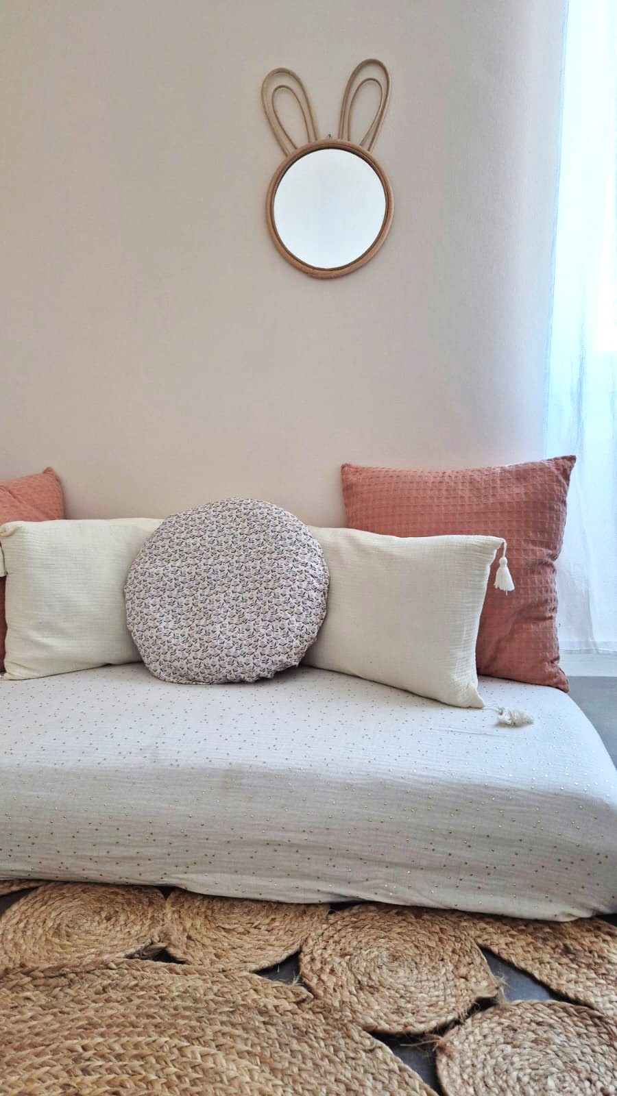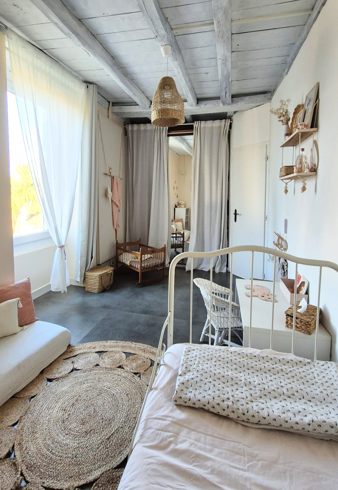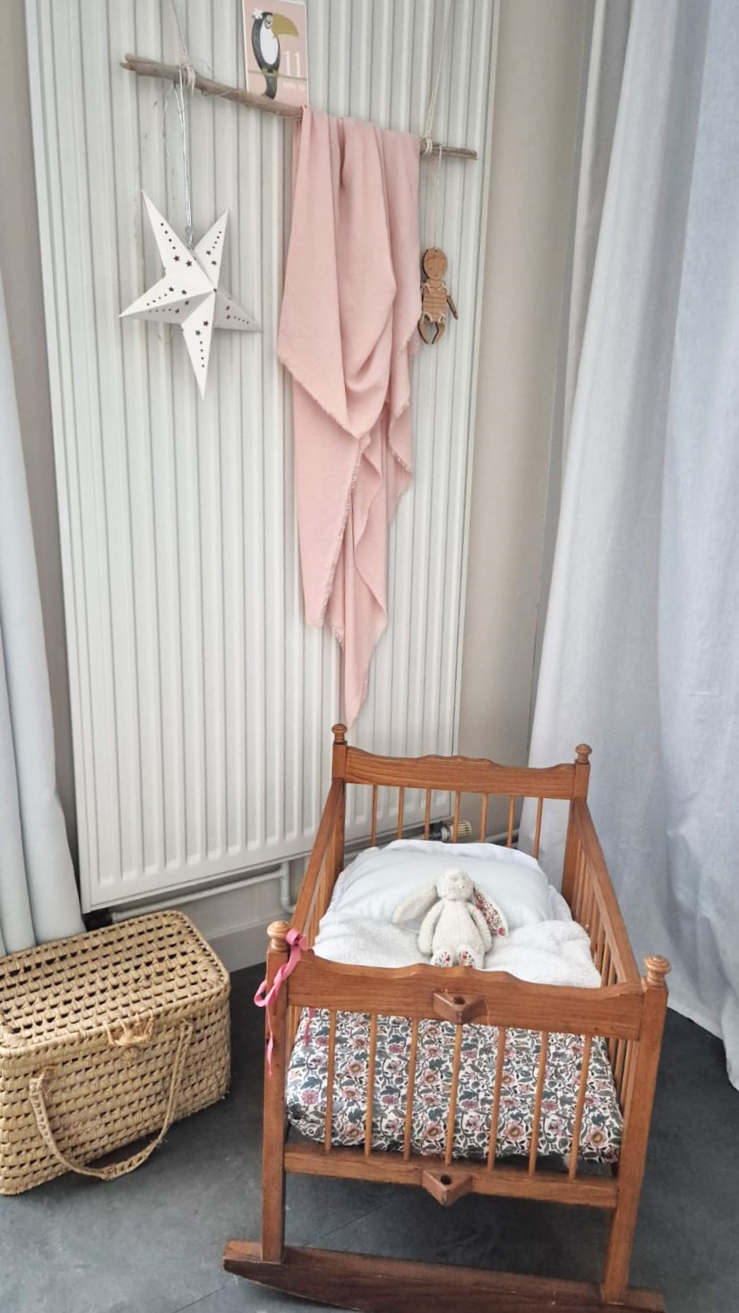 Pour une chambre naturelle et tout en délicatesse, le gris a laissé place à un beige rosé poudré qui apporte tout le charme et la douceur dont ce petit coeur a besoin.