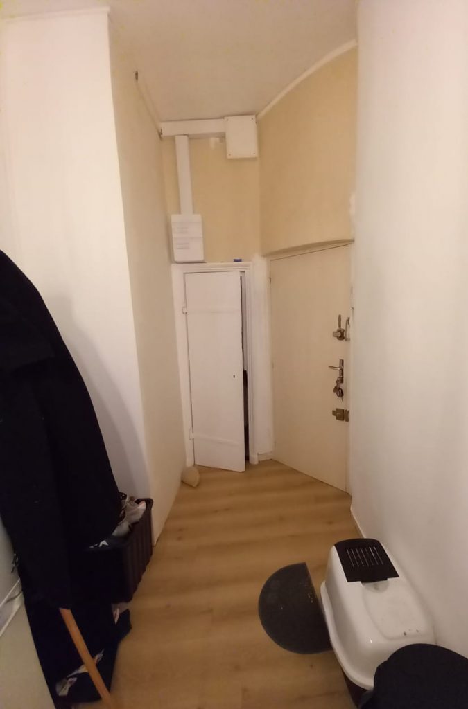 Sa problématique était une entrée étroite qui mène directement à la cuisine, et avec une grande hauteur sous plafonds.